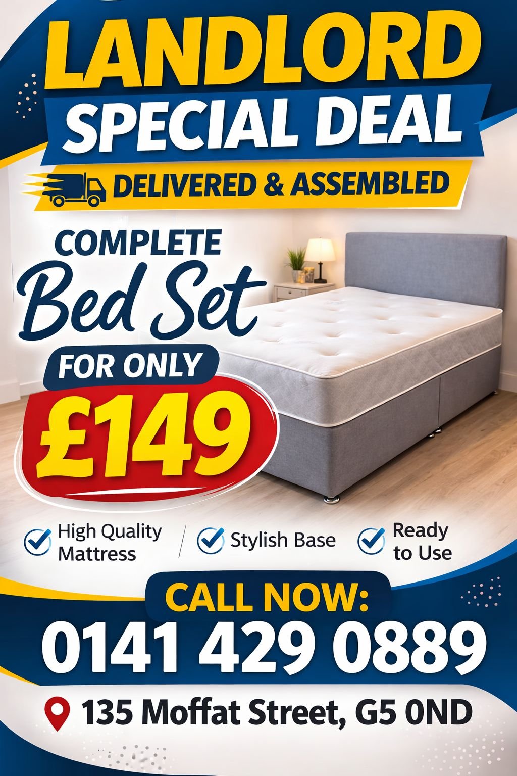 Are you a landlord looking to furnish a property quickly and affordably, or simply searching for the best value bed in Glasgow? Look no further. Our Landlord Special Deal offers a complete, stylish, and durable sleeping solution at a price that can’t be beaten.